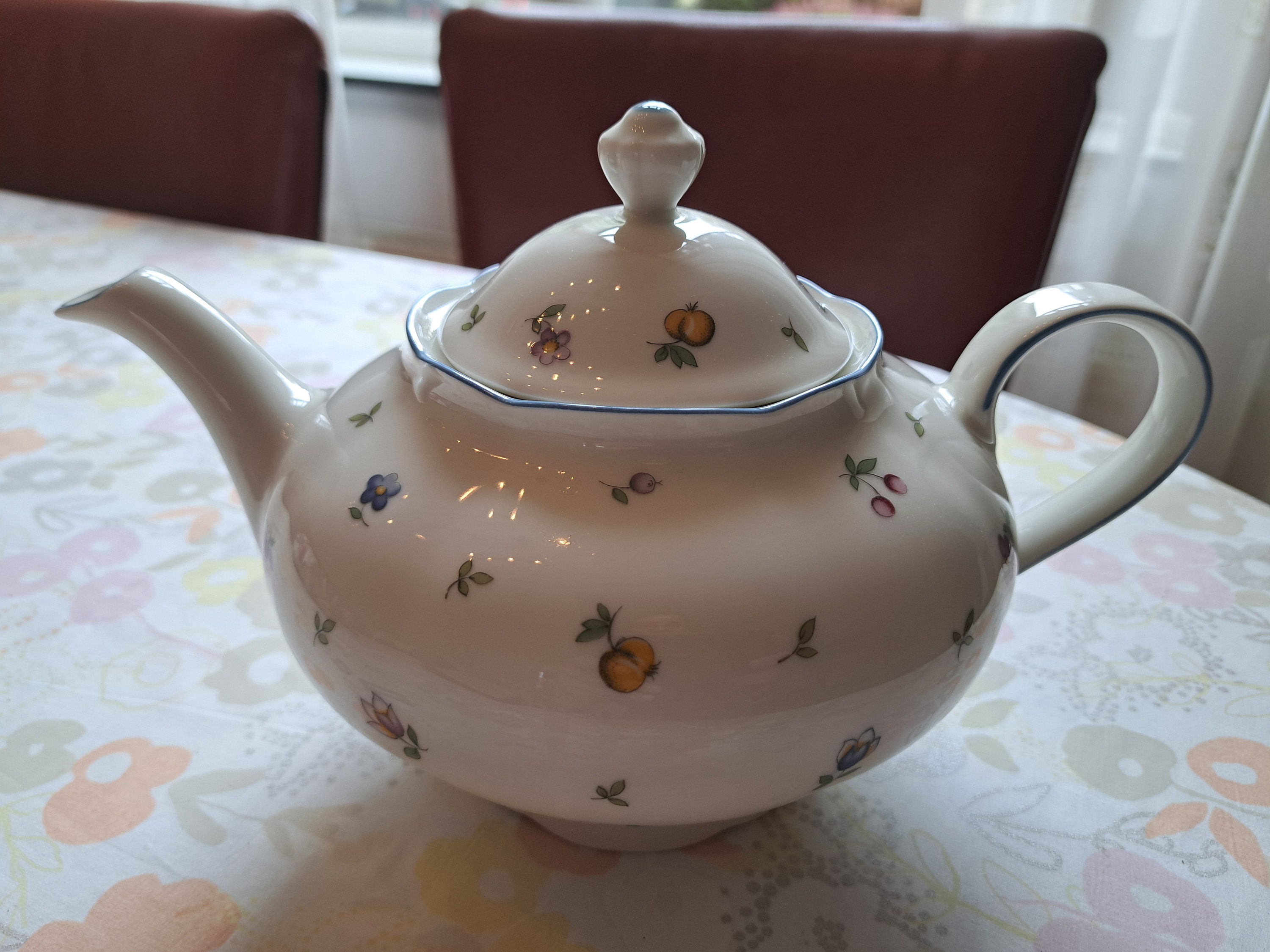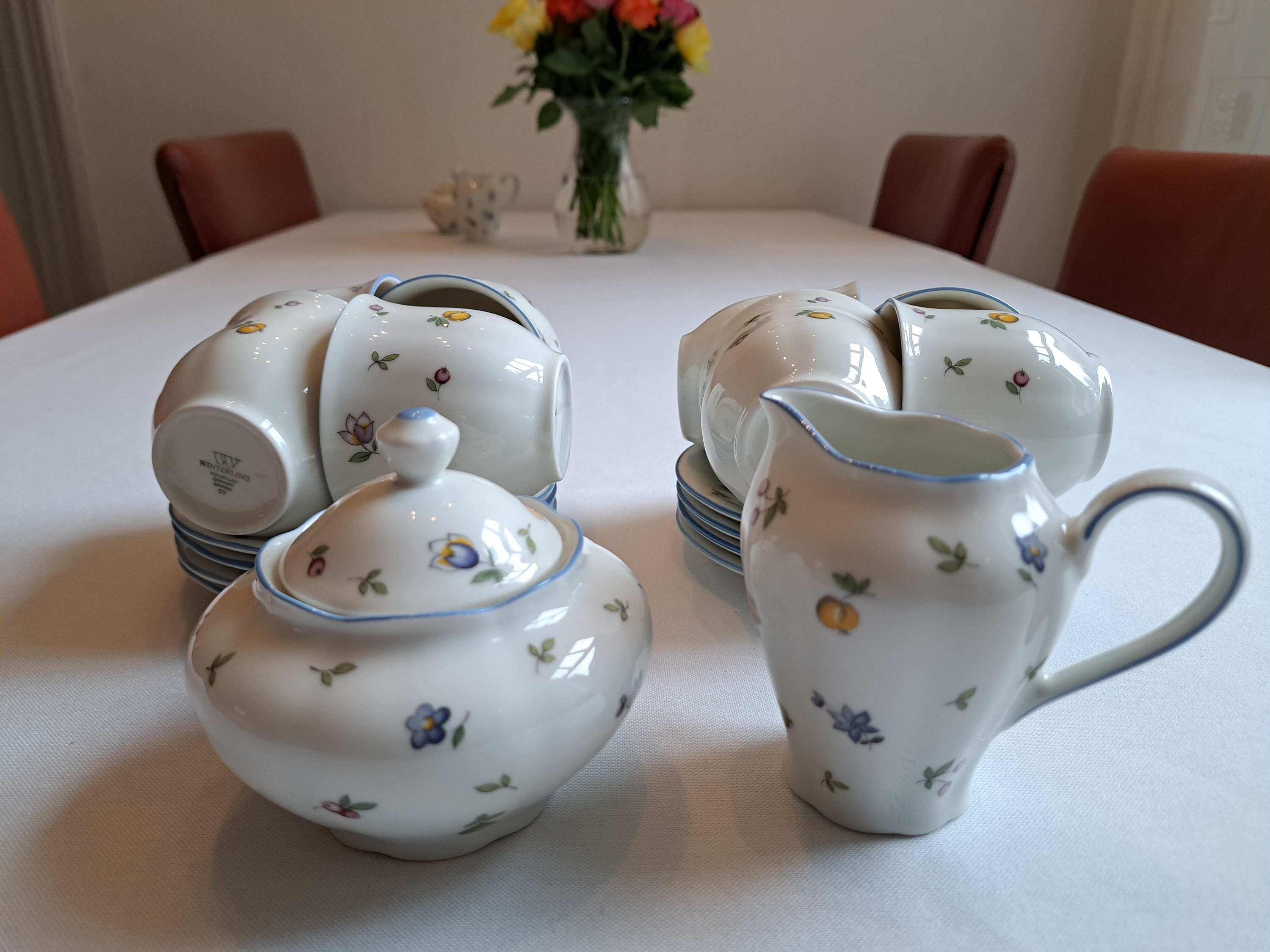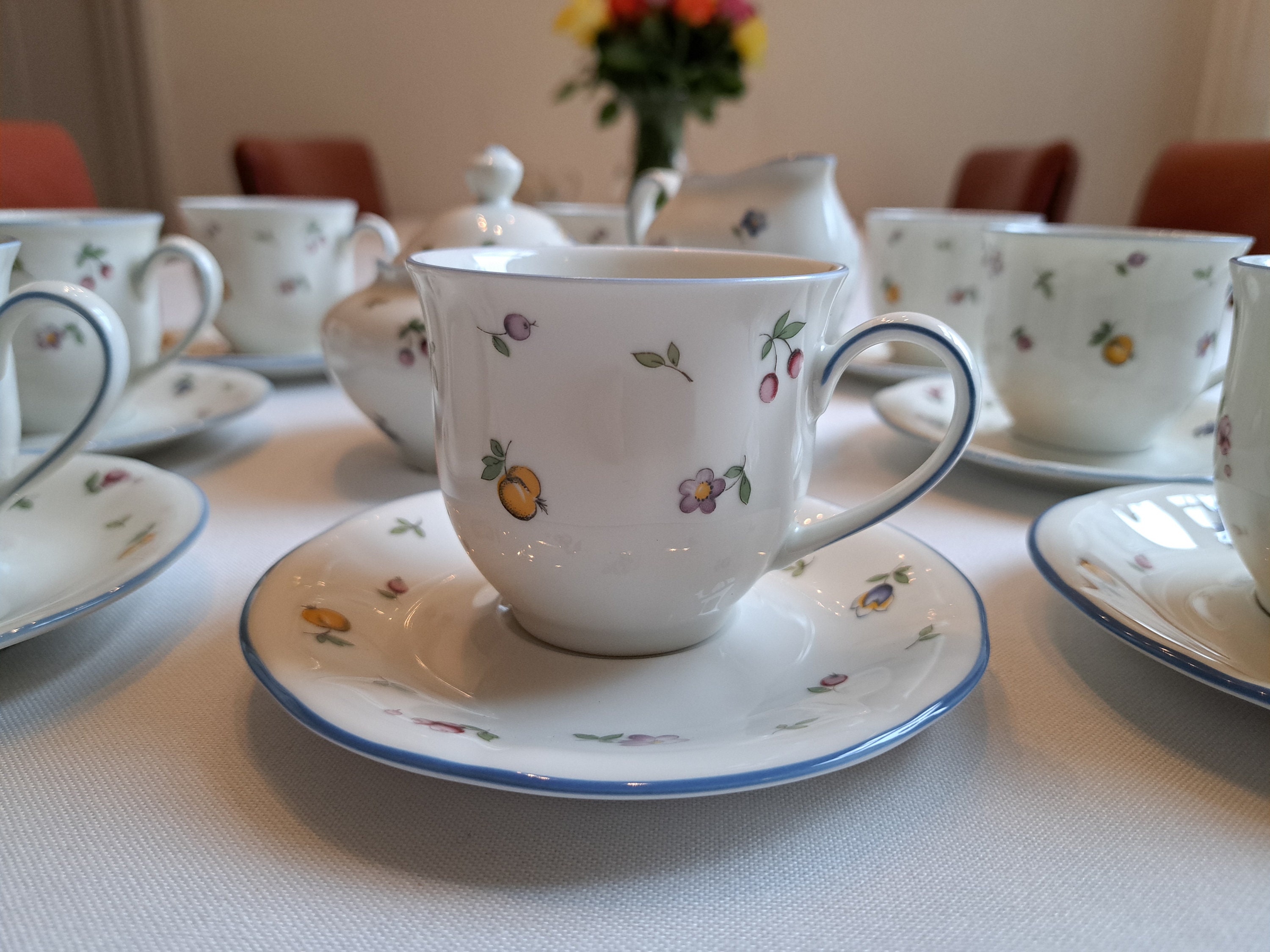 Cheerful vintage Winterling Bavaria coffee/tea set from the Elfia series with a fruit and floral pattern from the 1980s.