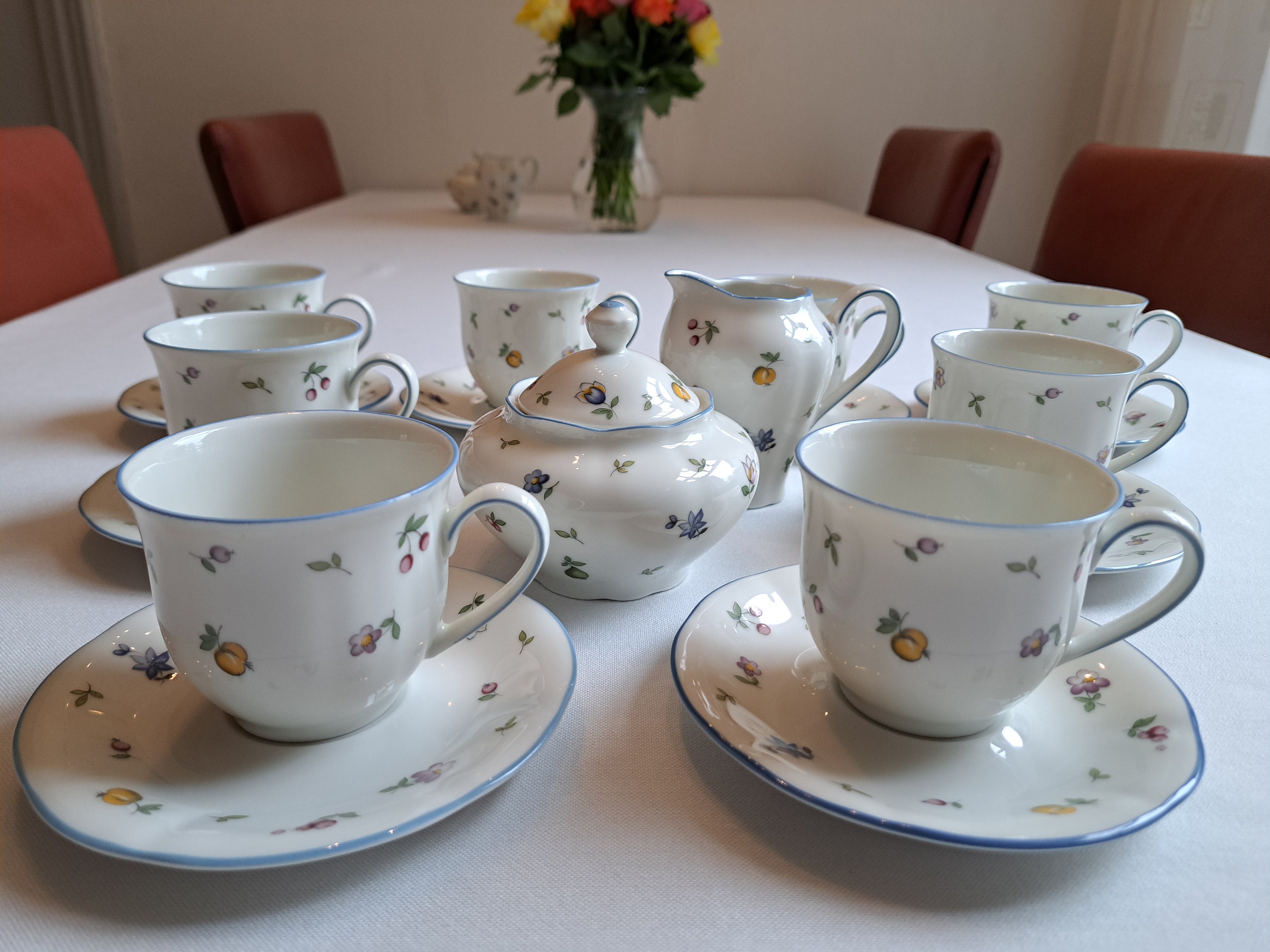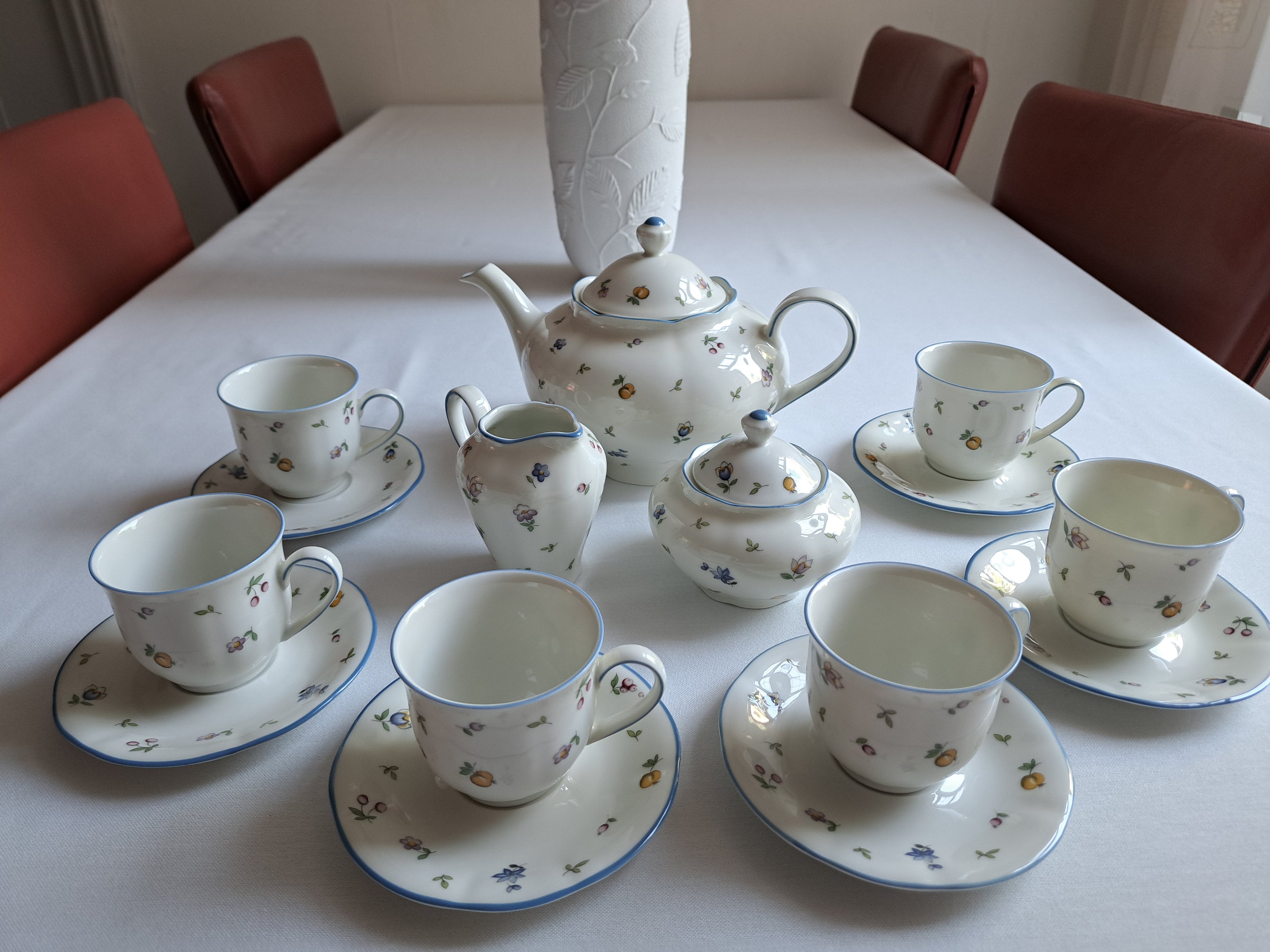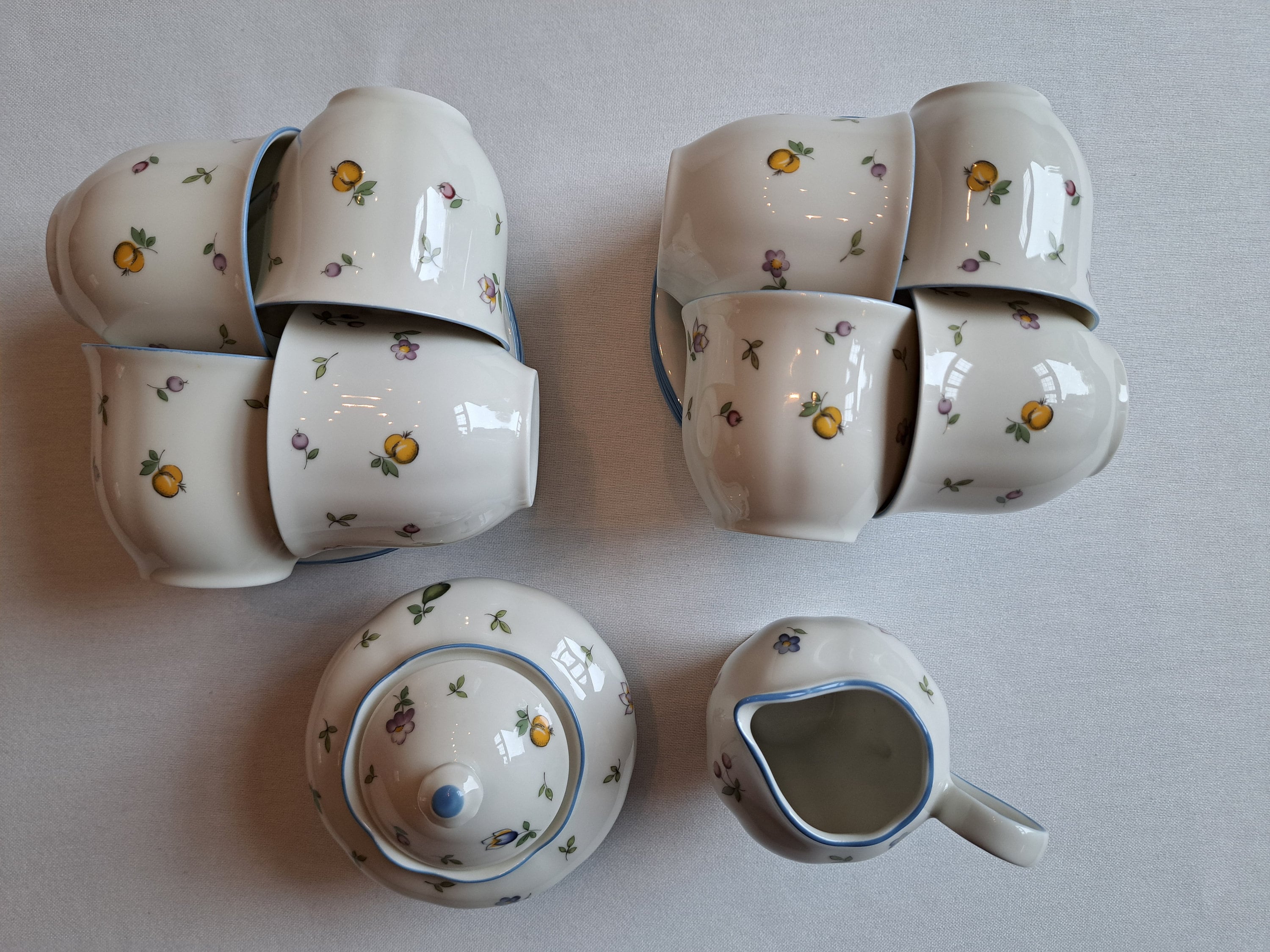 Cheerful vintage Winterling Bavaria coffee/tea set from the Elfia series with a fruit and floral pattern from the 1980s.