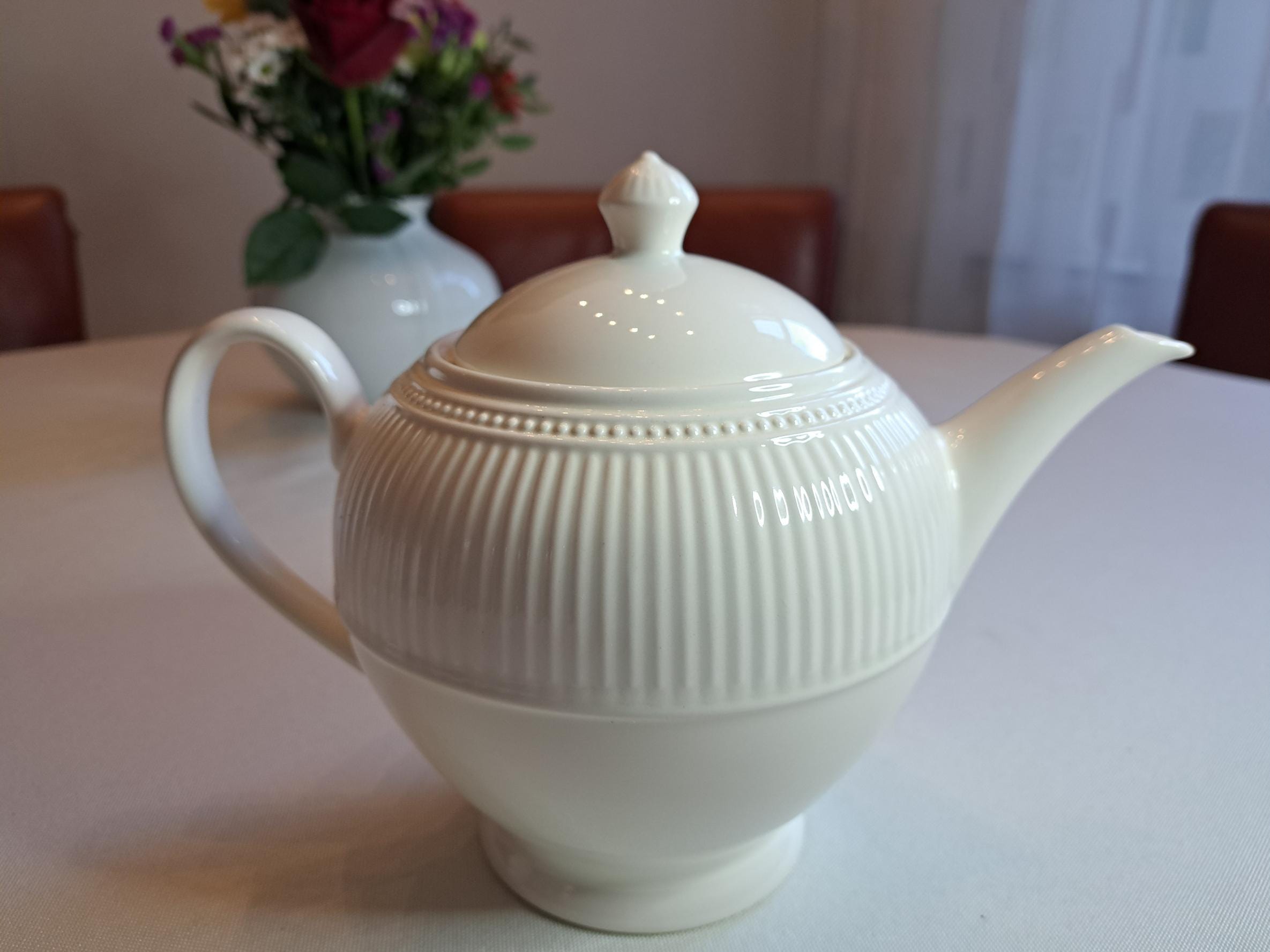 The English company Wedgwood began producing tableware in 1759. Wedgwood was granted the right to use the honorary title Queen's Ware by Queen Charlotte in 1766 for earthenware tableware with a cream glaze. Today, the Wedgwood Edme series is the most famous Queen's Ware. The Windsor series is also Queen's Ware and resembles Edme, but is slightly whiter. Wedgwood Windsor is made of very durable earthenware, which is dishwasher and microwave safe.